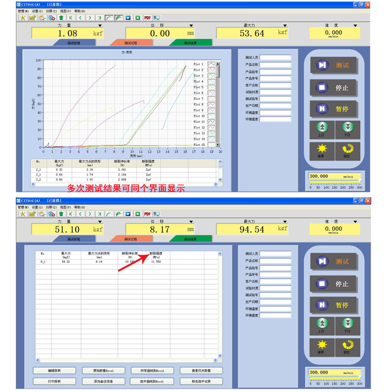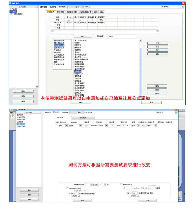 2.多功能電腦版。軟件主要特點,可設(shè)定通過力或變形量為指標(biāo)的動作條件,同時設(shè)定運行多少次,讓機(jī)器出來每次測試的數(shù)據(jù)。實現(xiàn)簡單的產(chǎn)品性能老化試驗。