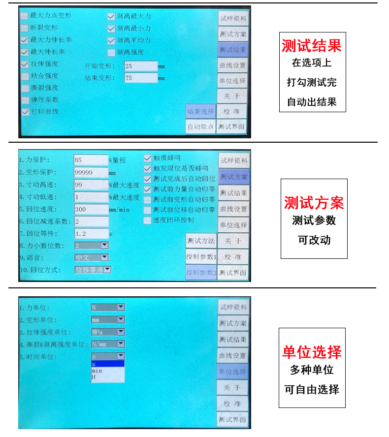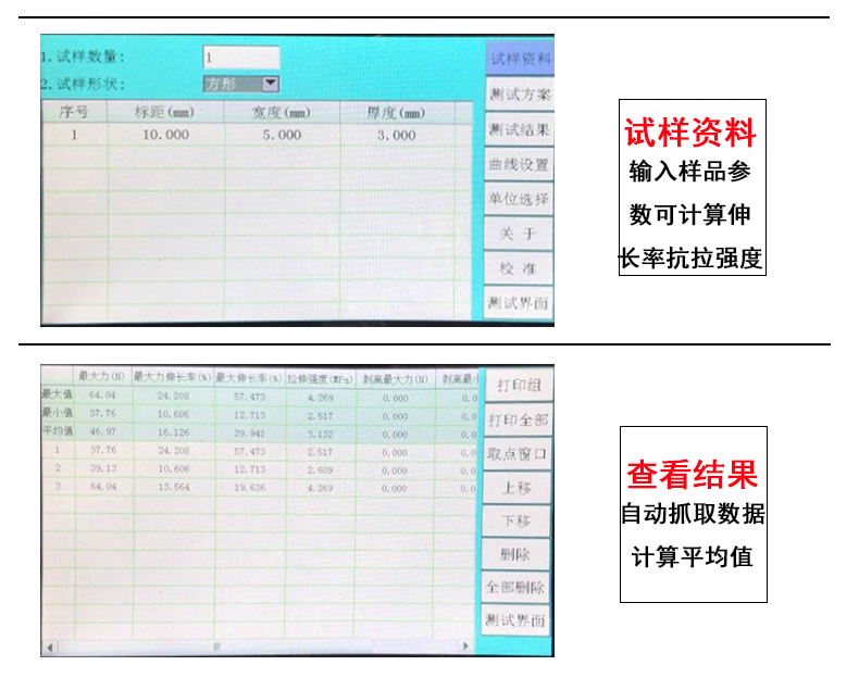 3.電腦版可實現(xiàn)拉伸、壓縮、彎曲、剝離、剪切、撕裂、刺破、頂破、出彈性模量數(shù)據(jù)。