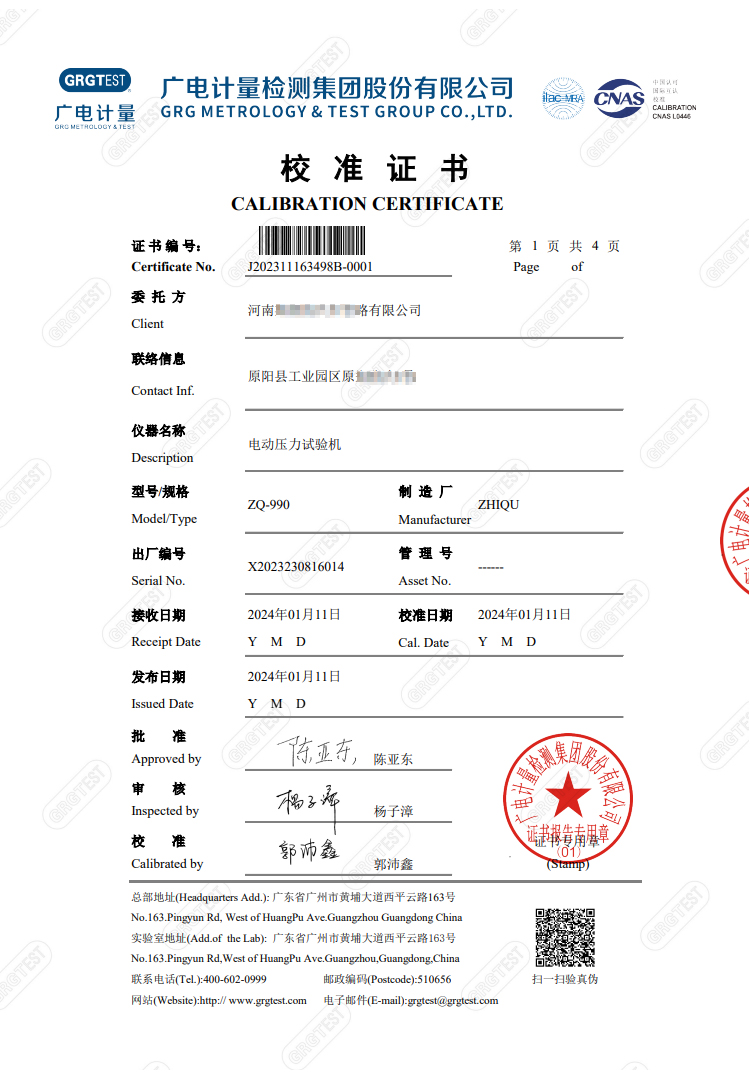 關(guān)鍵詞:證書,校準(zhǔn),壓力,ZQ-990,智取