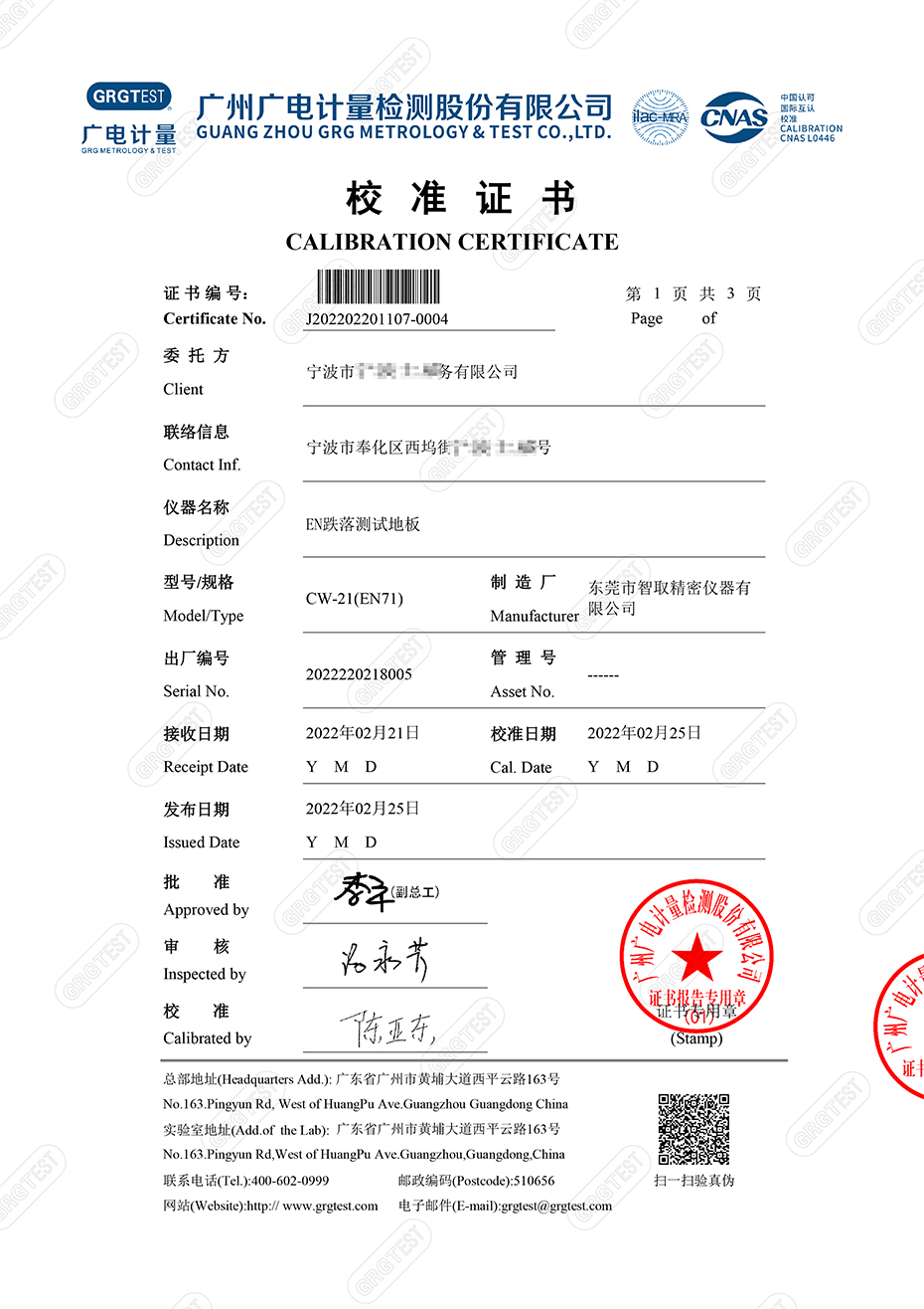 上一篇:ASTM/F963美標跌落測試地板校準證書