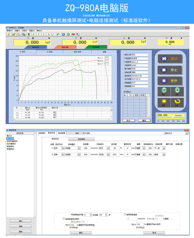 智取ZQ-980 臥式拉力試驗(yàn)機(jī)采用觸摸屏控制和全新控制軟件。適用于膠黏劑、膠粘帶、不干膠、復(fù)合膜、人造革、編織袋、薄膜、紙張、電子載帶等相關(guān)產(chǎn)品的剝離力、剪切力、拉伸強(qiáng)度、斷裂伸長(zhǎng)率等性能測(cè)試。本機(jī)可適應(yīng)GB/ISO/ASTM/JIS/DIN等標(biāo)準(zhǔn)。機(jī)器測(cè)控界面直觀層次分明清晰、操作簡(jiǎn)單廣泛應(yīng)用于工廠、高院校、科研機(jī)構(gòu)、技術(shù)監(jiān)督、質(zhì)檢站所等部門.