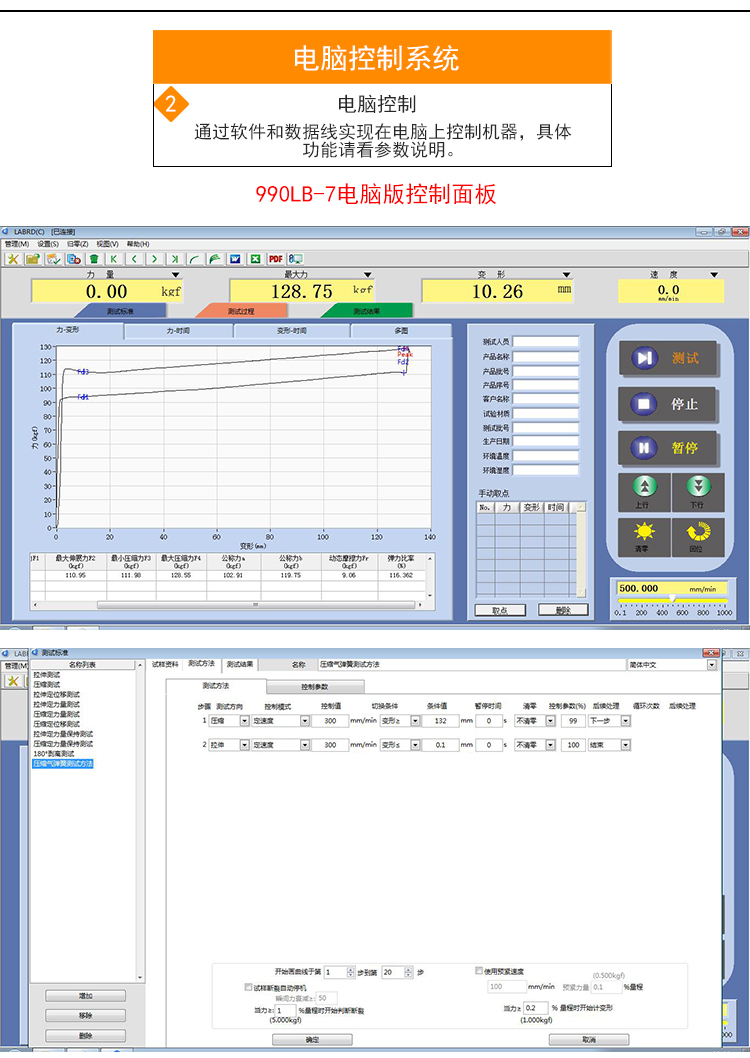 ZQ-990LB-7壓縮氣彈簧試驗機,本機適用于GB25751-2010壓縮氣彈簧技術條件測試標準,可測試壓縮氣彈簧的各項力指標,如:小伸展力F1、大伸展力F2、小壓縮力F3、大壓縮力F4、公稱力Fa、公稱力Fb、動態(tài)摩擦力Fr、彈力比率a等數(shù)據(jù)。