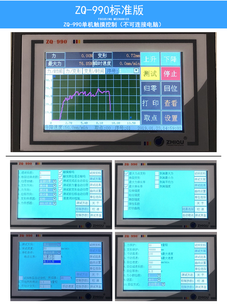 ZQ-990系列新款拉力試驗機采用觸摸屏控制??蓪Ω鞣N材料進行力學性能測試和分析研究,廣泛應用于航天航空、石油化工、機械制造、塑料橡膠、陶瓷建材、金屬材料、建筑工程等行業(yè),本機可適應GB/ISO/ASTM/JIS/DIN等標準,選配不同夾具后可進行拉伸、壓縮、彎曲、剝離、剪切、撕裂、刺破等試驗,可檢測材料的抗拉(壓、彎)強度、延伸率等參數(shù)。機器測控界面直觀層次分明清晰、操作簡單,廣泛應用在工廠、高院校、科研機構(gòu)、技術監(jiān)督、質(zhì)檢站所等部門。