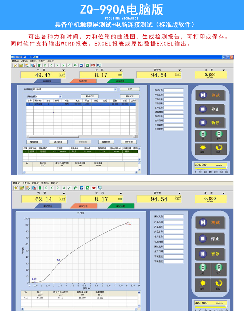 ZQ-990系列新款拉力試驗(yàn)機(jī)采用觸摸屏控制??蓪?duì)各種材料進(jìn)行力學(xué)性能測(cè)試和分析研究,廣泛應(yīng)用于航天航空、石油化工、機(jī)械制造、塑料橡膠、陶瓷建材、金屬材料、建筑工程等行業(yè),本機(jī)可適應(yīng)GB/ISO/ASTM/JIS/DIN等標(biāo)準(zhǔn),選配不同夾具后可進(jìn)行拉伸、壓縮、彎曲、剝離、剪切、撕裂、刺破等試驗(yàn),可檢測(cè)材料的抗拉(壓、彎)強(qiáng)度、延伸率等參數(shù)。機(jī)器測(cè)控界面直觀層次分明清晰、操作簡(jiǎn)單,廣泛應(yīng)用在工廠、高院校、科研機(jī)構(gòu)、技術(shù)監(jiān)督、質(zhì)檢站所等部門。