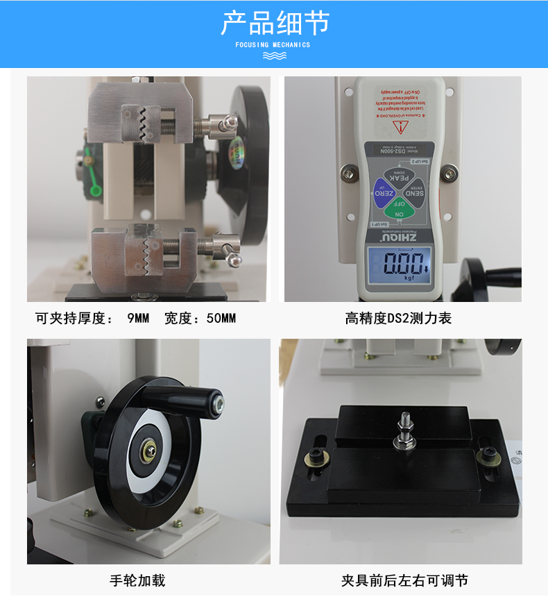 智取ZQ-21A-4拉力試驗(yàn)機(jī)該儀器機(jī)械部份采用全封閉結(jié)構(gòu)。機(jī)械傳動(dòng)系統(tǒng)采用高精度滾珠絲桿與雙直線光桿,轉(zhuǎn)動(dòng)間隙極小,大大提高測(cè)試的精密度。測(cè)試時(shí)轉(zhuǎn)動(dòng)手輪使推拉力計(jì)上下運(yùn)動(dòng),以實(shí)現(xiàn)對(duì)測(cè)試產(chǎn)品的拉伸或壓縮試驗(yàn)。手輪部份采用杠桿原理設(shè)計(jì),使用起來(lái)更輕便省力。力傳感器部份采用智取品牌一代DS2系列推拉力計(jì)。誤差可控制在0.5%左右,采樣速率可達(dá)1000次/秒,同時(shí)配送軟件和USB數(shù)據(jù)線,可同步把數(shù)據(jù)傳送到電腦,進(jìn)行數(shù)據(jù)保存。 通過(guò)轉(zhuǎn)換不同夾具可進(jìn)行,拉伸、壓縮、彎曲、剝離、剪切、撕裂、刺破、等試驗(yàn)。儀器具有體積小、結(jié)構(gòu)緊湊、穩(wěn)定性高、使用方便等優(yōu)點(diǎn)長(zhǎng)期受到廣大用戶的喜愛(ài)。(可選配精度0.01MM的位移標(biāo)尺,可以實(shí)現(xiàn)力和位移的同步變化,實(shí)時(shí)顯示拉力或壓力同位移的變化)