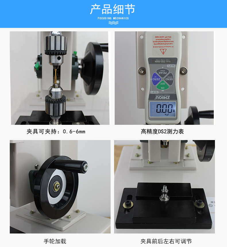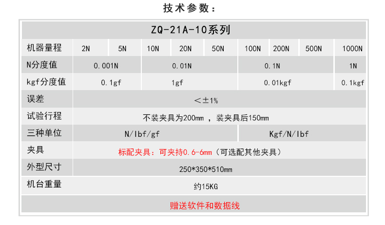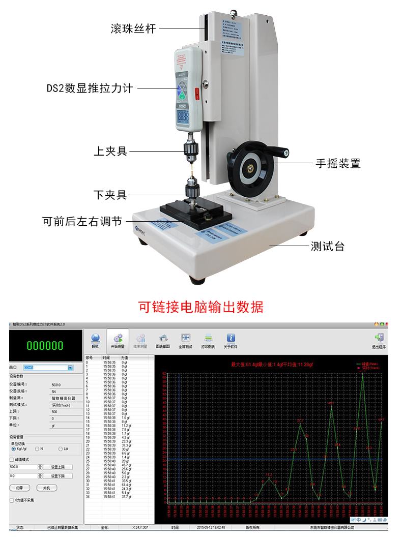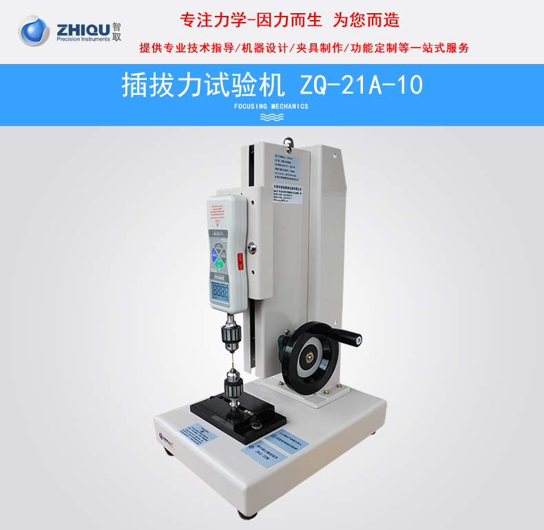 智取ZQ-21A-10插拔力試驗(yàn)機(jī)該儀器機(jī)械部份采用全封閉結(jié)構(gòu)。機(jī)械傳動(dòng)系統(tǒng)采用高精度滾珠絲桿與雙直線光桿,轉(zhuǎn)動(dòng)間隙極小,大大提高測試的精密度。測試時(shí)轉(zhuǎn)動(dòng)手輪使推拉力計(jì)上下運(yùn)動(dòng),以實(shí)現(xiàn)對(duì)測試產(chǎn)品的拉伸或壓縮試驗(yàn)。手輪部份采用杠桿原理設(shè)計(jì),使用起來更輕便省力。力傳感器部份采用智取品牌一代DS2系列推拉力計(jì)。誤差可控制在0.5%左右,采樣速率可達(dá)1000次/秒,同時(shí)配送軟件和USB數(shù)據(jù)線,可同步把數(shù)據(jù)傳送到電腦,進(jìn)行數(shù)據(jù)保存。 通過轉(zhuǎn)換不同夾具可進(jìn)行,拉伸、壓縮、彎曲、剝離、剪切、撕裂、刺破、等試驗(yàn)。儀器具有體積小、結(jié)構(gòu)緊湊、穩(wěn)定性高、使用方便等優(yōu)點(diǎn)長期受到廣大用戶的喜愛。(可選配精度0.01MM的位移標(biāo)尺,可以實(shí)現(xiàn)力和位移的同步變化,實(shí)時(shí)顯示拉力或壓力同位移的變化)