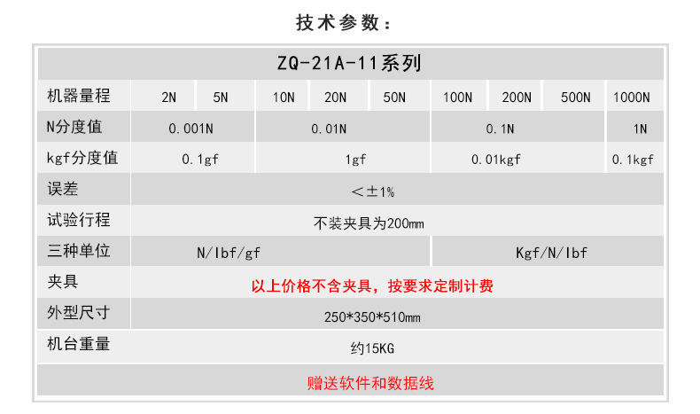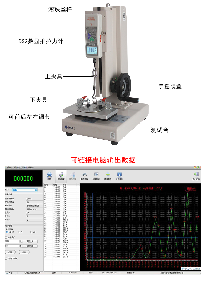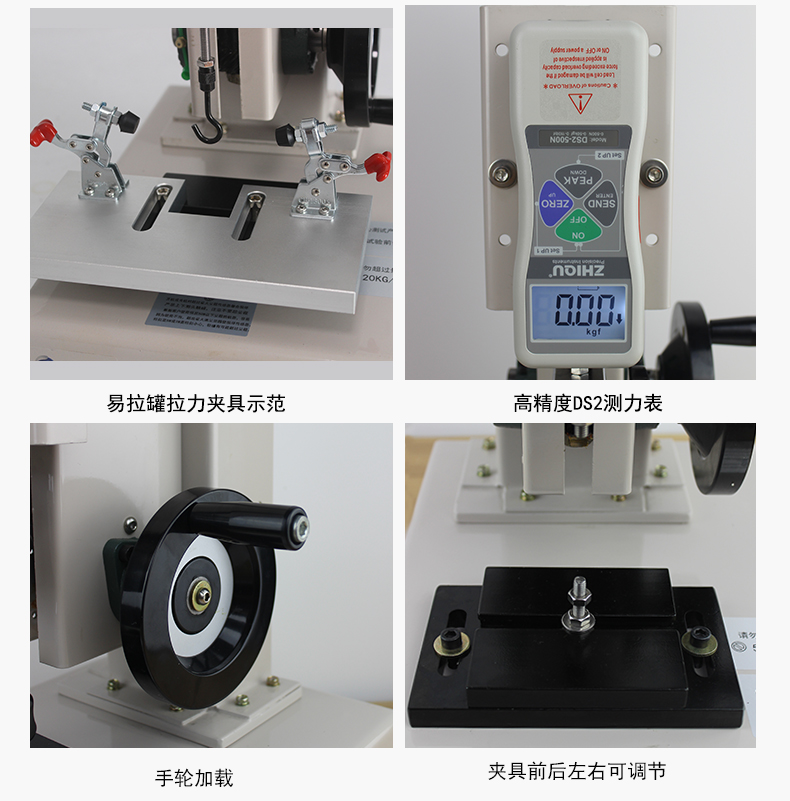 智取ZQ-21A-11易拉罐拉力試驗(yàn)機(jī)該儀器機(jī)械部份采用全封閉結(jié)構(gòu)。機(jī)械傳動(dòng)系統(tǒng)采用高精度滾珠絲桿與雙直線光桿,轉(zhuǎn)動(dòng)間隙極小,大大提高測(cè)試的精密度。測(cè)試時(shí)轉(zhuǎn)動(dòng)手輪使推拉力計(jì)上下運(yùn)動(dòng),以實(shí)現(xiàn)對(duì)測(cè)試產(chǎn)品的拉伸或壓縮試驗(yàn)。手輪部份采用杠桿原理設(shè)計(jì),使用起來(lái)更輕便省力。力傳感器部份采用智取品牌一代DS2系列推拉力計(jì)。誤差可控制在0.5%左右,采樣速率可達(dá)1000次/秒,同時(shí)配送軟件和USB數(shù)據(jù)線,可同步把數(shù)據(jù)傳送到電腦,進(jìn)行數(shù)據(jù)保存。 通過(guò)轉(zhuǎn)換不同夾具可進(jìn)行,拉伸、壓縮、彎曲、剝離、剪切、撕裂、刺破、等試驗(yàn)。儀器具有體積小、結(jié)構(gòu)緊湊、穩(wěn)定性高、使用方便等優(yōu)點(diǎn)長(zhǎng)期受到廣大用戶的喜愛(ài)。(可選配精度0.01MM的位移標(biāo)尺,可以實(shí)現(xiàn)力和位移的同步變化,實(shí)時(shí)顯示拉力或壓力同位移的變化)