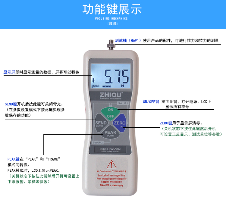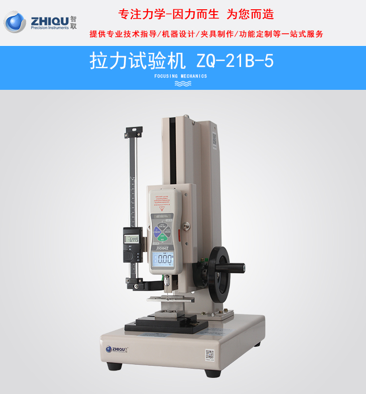智取ZQ-21B-5拉力試驗(yàn)機(jī)該儀器機(jī)械部份采用全封閉結(jié)構(gòu)。機(jī)械傳動系統(tǒng)采用高精度滾珠絲桿與雙直線光桿,轉(zhuǎn)動間隙極小,大大提高測試的精密度。測試時轉(zhuǎn)動手輪使推拉力計(jì)上下運(yùn)動,以實(shí)現(xiàn)對測試產(chǎn)品的拉伸或壓縮試驗(yàn)。手輪部份采用杠桿原理設(shè)計(jì),使用起來更輕便省力。力傳感器部份采用智取品牌一代DS2系列推拉力計(jì)。誤差可控制在0.5%左右,采樣速率可達(dá)1000次/秒,同時配送軟件和USB數(shù)據(jù)線,可同步把數(shù)據(jù)傳送到電腦,進(jìn)行數(shù)據(jù)保存。 通過轉(zhuǎn)換不同夾具可進(jìn)行,拉伸、壓縮、彎曲、剝離、剪切、撕裂、刺破、等試驗(yàn)。儀器具有體積小、結(jié)構(gòu)緊湊、穩(wěn)定性高、使用方便等優(yōu)點(diǎn)長期受到廣大用戶的喜愛。配精度0.01MM的位移標(biāo)尺,可以實(shí)現(xiàn)力和位移的同步變化,實(shí)時顯示拉力或壓力同位移的變化