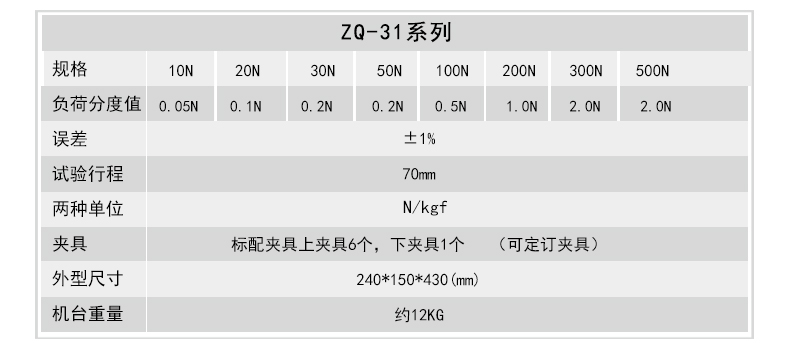 ZQ-31壓力試驗(yàn)機(jī),本機(jī)標(biāo)配6種測(cè)試頭。適用于各行業(yè)和科研機(jī)構(gòu)作拉壓負(fù)荷、插拔力、ZQ-31壓力試驗(yàn)機(jī),本機(jī)標(biāo)配6種測(cè)試頭。適用于各行業(yè)和科研機(jī)構(gòu)作拉壓負(fù)荷、插拔力、設(shè)有定位結(jié)構(gòu);具備手動(dòng)操作、簡(jiǎn)單穩(wěn)定、快速高效、適合批量測(cè)試。