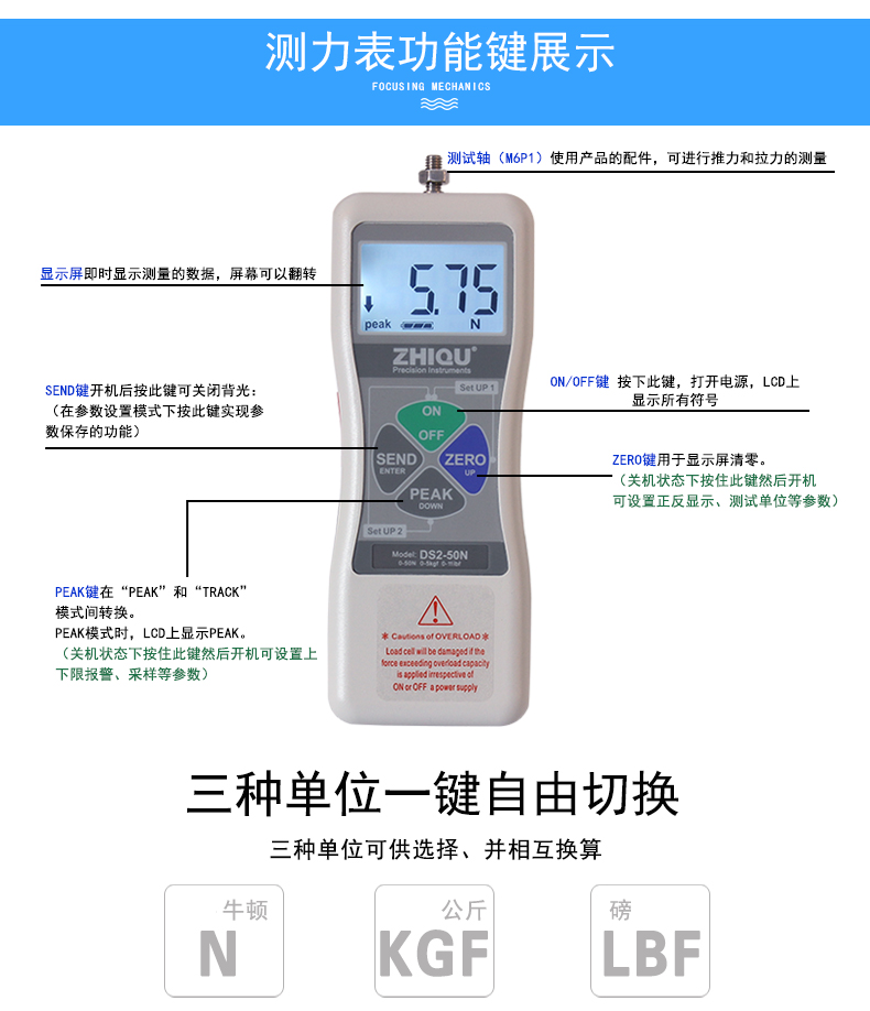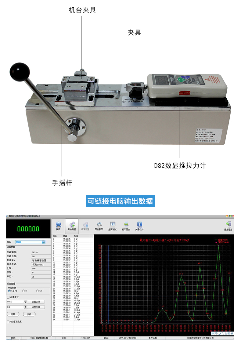 智取ZQ-51臥式端子線束拉力試驗(yàn)機(jī),機(jī)械部分采用杠桿手柄原理,使用更省力。通過(guò)移動(dòng)手柄對(duì)產(chǎn)品進(jìn)行拉脫或插拔測(cè)試。儀器力值部份采用了新款智取DS2系列高精度數(shù)顯推拉力計(jì),有效的保證了測(cè)試數(shù)據(jù)度??蓪?shí)時(shí)顯示測(cè)試過(guò)程的力或顯示大力。同時(shí)配送軟件和數(shù)據(jù)線可實(shí)現(xiàn)把數(shù)據(jù)傳送到電腦。