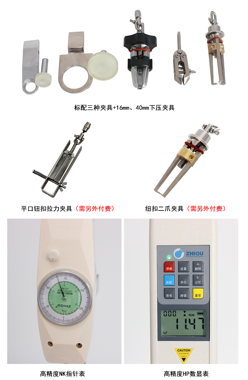 本儀器由專用鈕扣測試架+測力表+3個(gè)專用鈕扣夾具組成,專門用于測量鈕扣的扣合力或脫離衣物破壞力。檢測鈕扣、按鈕等固定強(qiáng)度是服裝行業(yè)很重要的一項(xiàng)標(biāo)準(zhǔn),尤其是在嬰兒和兒童服裝設(shè)計(jì)及制造中為重要。防止出現(xiàn)質(zhì)量問題使嬰兒和兒童吞食或出現(xiàn)其他危險(xiǎn)情況。在鈕扣固定裝飾件上使用一定力的測量,來保證產(chǎn)品的安全性。