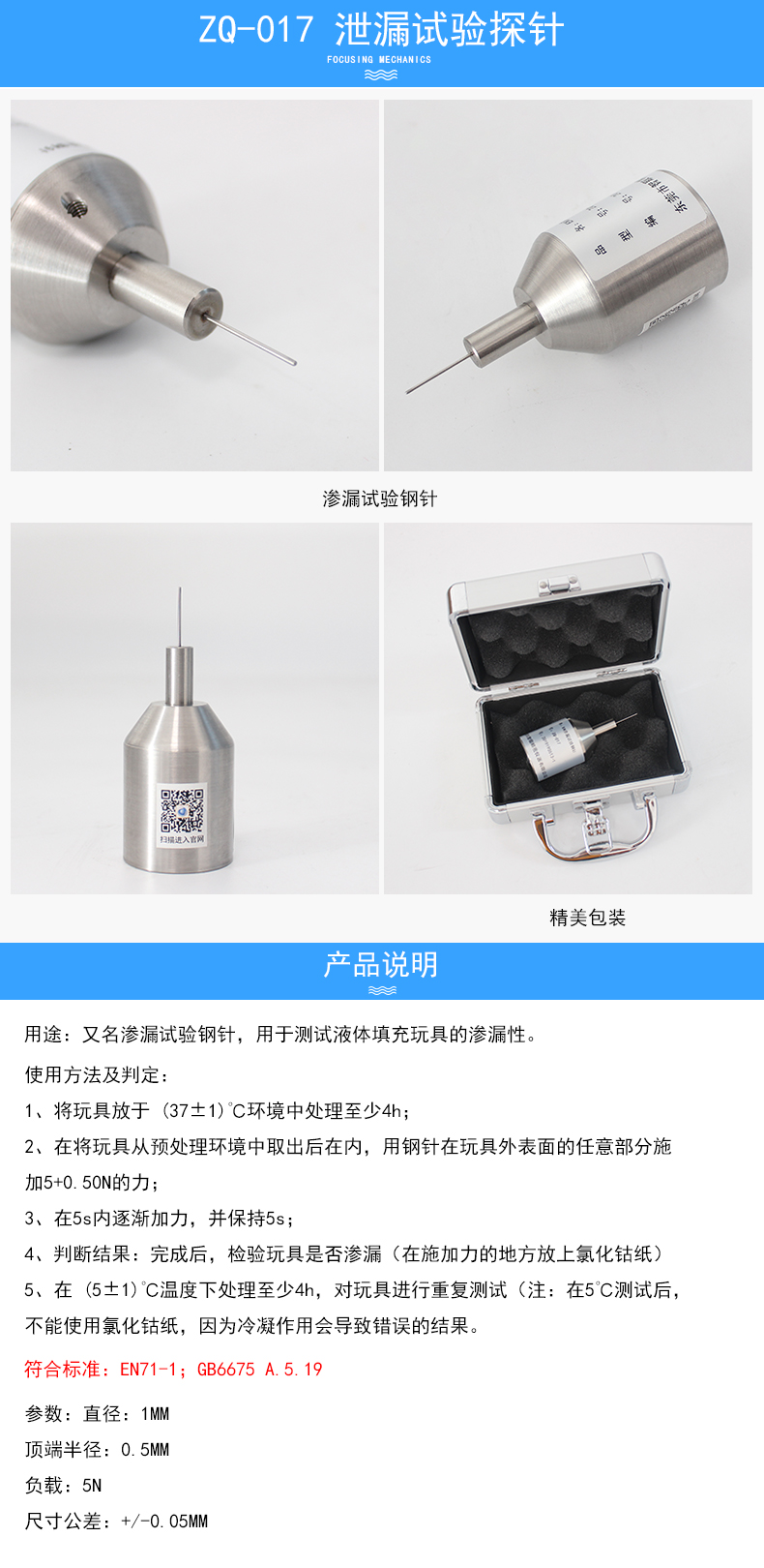 關鍵詞:玩具泄漏測試,測試鋼針,EN71探針