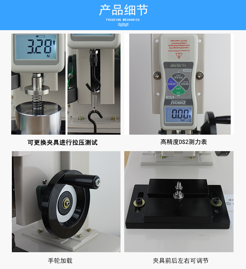智取品牌ZQ-22C-2系列彈簧試驗機(jī),是一款新型彈簧拉壓雙用檢測儀器。該儀器機(jī)械部份采用全封閉結(jié)構(gòu)。機(jī)械傳動系統(tǒng)采用高精度滾珠絲桿與雙直線光桿,轉(zhuǎn)動間隙極小,大大提高測試的精度。測試時轉(zhuǎn)動手輪使測力表和位移標(biāo)尺上下運(yùn)動,以實現(xiàn)對彈簧的拉伸或壓縮測試??蓽y試壓簧的高度與力或拉簧的長度與力的變化。手輪部份采用杠桿原理設(shè)計,使用起來更輕便省力。力傳感器部份采用智取品牌一代DS2系列推拉力計。誤差可控制在0.5%以內(nèi),采樣速率可達(dá)1000次/秒,位移標(biāo)尺分度值可達(dá)0.01MM是一款高精密度彈簧試驗機(jī)。